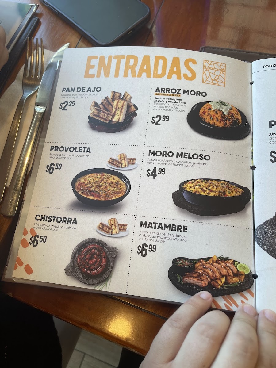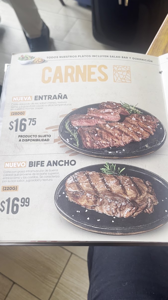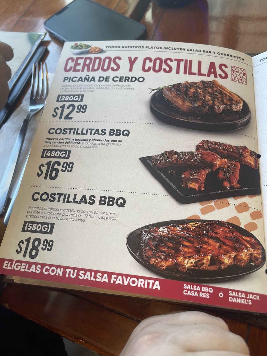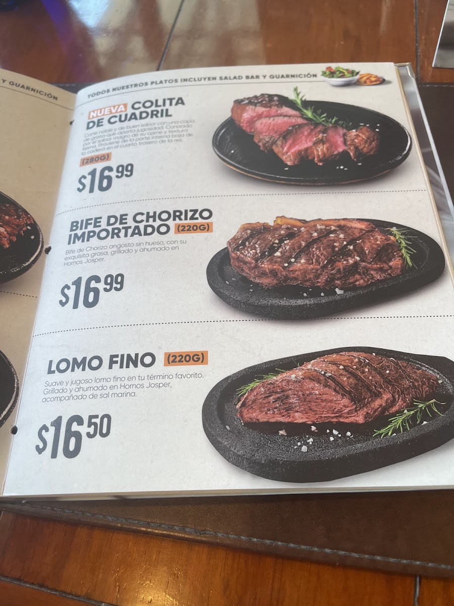 Dining at Casa Res - Aeropuerto Uio offers a menu that balances hearty Ecuadorian flavors with international favorites, catering to a wide range of tastes. Starters like Pan de Ajo, Arroz Moro con Queso, and Provoleta Clásica set a comforting tone, while the Caldo de Costilla and Chistorra provide richer, savory options. For sharing, the Picada Mixta is a standout, perfectly complementing the various parrilladas, including Parrillada Triple, Parrillada Doble, and Parrillada Individual. Meat lovers are well-served with selections such as Lomo Fino, Bife de Chorizo Uruguayo, Lomo Casa Res, Lomo Portobellito, and Lomo a la Pimienta, alongside the succulent Picaña Americana. Ribs and pork dishes like Costillitas BBQ, St. Luis para Dos, Picaña de Cerdo, and Chuleta Casa Res offer smoky, tender indulgence, while grilled poultry including Pollo Parrillero, Pollo Jack Daniel’s, and Pollo Portobellito provide flavorful alternatives. The menu also features crowd-pleasing snacks such as Alitas BBQ a la Brasa, Steak Burger, Premium Burger, and Nuestra Clásica, alongside seafood options like Salmón a la Brasa, Parrillada Mar y Tierra, and Pescado al Grill. Sweet finishes include Cheesecake, Brownie con Helado, and Tarta de Queso Manchego, paired nicely with refreshing Sangría in a Jarra de Sangría or Copa de Sangría, or inventive beverages like Limonada Hierbabuena, Limonada Fresa, Limonada Maracuyá, and mocktails such as Mocktail Pineapple, Mocktail Passion Cherry, and Mocktail Wild Berries. Families are also well-catered with the Menú Infantil, featuring Costillas BBQ Jr, Strips Jr, and Hamburguesa Jr, making the menu approachable for all ages. Overall, the offerings at Casa Res - Aeropuerto Uio combine variety, indulgence, and classic flavors, ensuring a satisfying experience for travelers and locals alike.